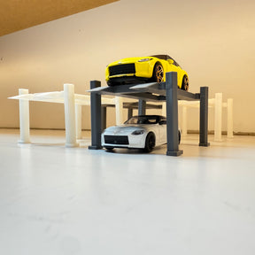 Made in house here at Sac City. You get a set of 4 Hot Wheels Car Lifts. Elevate your love for cars with Hot Wheels' 4 Post Lift (Set of 4)! Keep your collection enthusiast friendly with this must-have accessory that will add height and style to your Hot Wheels tracks. (Cars Not Included)