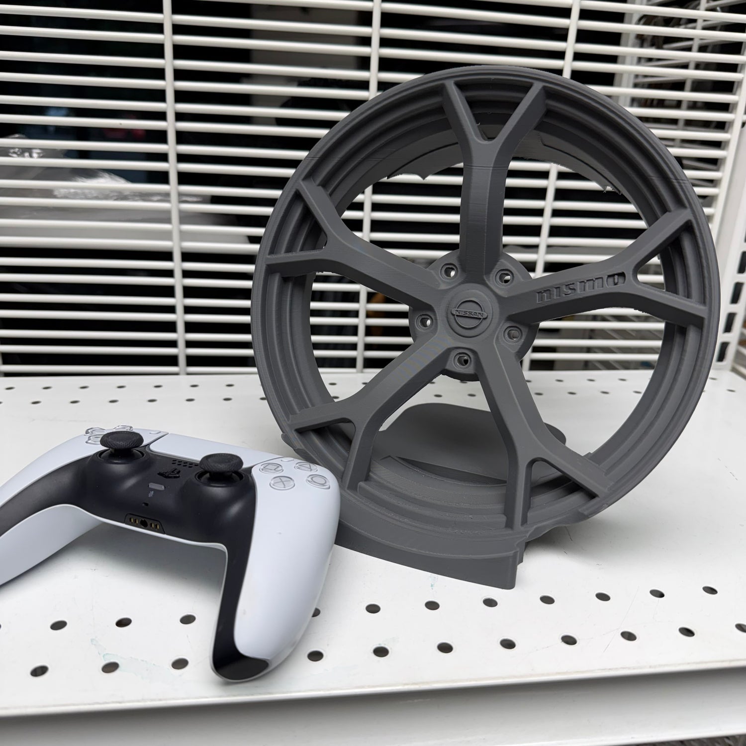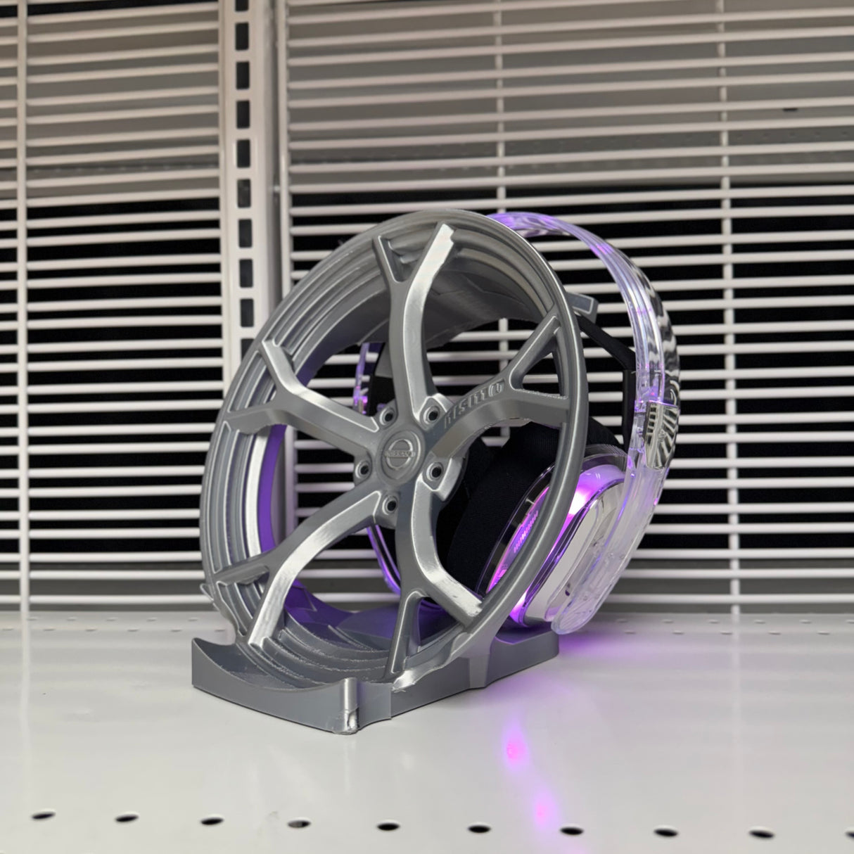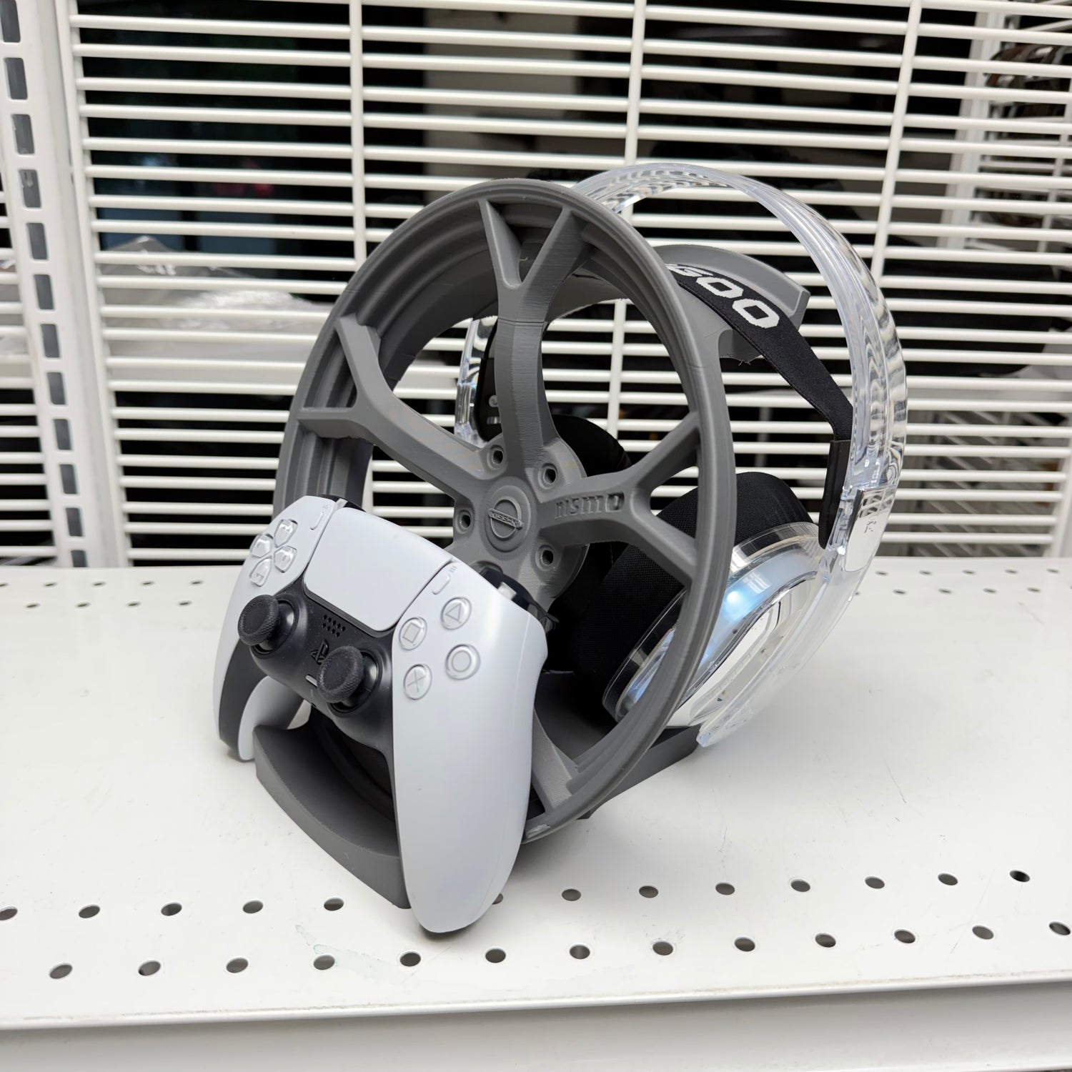 A one-of-a-kind made in-house Nismo version one gaming, controller, and headphone holder