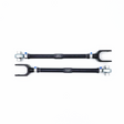 SPL Parts Rear Lower Camber Links (RLL) allow for an increased range of rear camber adjustment, which is necessary for lowered cars and for performance alignments. These arms are designed for use in high performance street and race vehicles. A lowered 370Z or G37 will need adjustment to get camber back in spec to ensure proper tire wear and handling due to aggressive factory camber curves. Small changes to ride height will affect camber settings.Our Dogbone style Rear Camber Links are our lightest yet and feature gun drilled 2024 Aluminum center links, 60601 Aluminum clamps, and clevises, along with Blue Anodized Titanium socket head cap screws and our 360 degree rotating clamp system. This combination provides superior strength, performance, durability, and ease of adjustment. Long gone are the days of fumbling with wrenches to tighten jam nuts while trying to trying to keep your bearings oriented correctly. A simple 3/16" allen key is all that is required to lock down your alignment settings!3 piece FK Bearings Rod Ends manufactured in Connecticut feature a Teflon liner to provide quiet operation, low friction, smooth articulation, and eliminates bushing deflection under load. The PTFE liner is chemically bonded to the inner diameter of the race. The liner offers a very high load carrying capacity and has greatly increased dynamic wear characteristics. The operating temperatures of the liner ranges from -65ยบ to 325ยบF, offering robust reliability for both street and track use.Purchase with our SPL Parts Rear Toe Links (#SPL RTA V37D) and SPL Parts Eccentric Lockout (#SPL EL V37) kit for total rear camber and toe alignment with "zero-slip".Sold as a pair.Made in the USA.