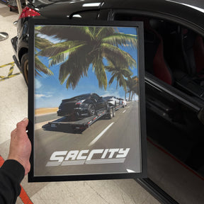 A Framed Poster on the way to a track day
